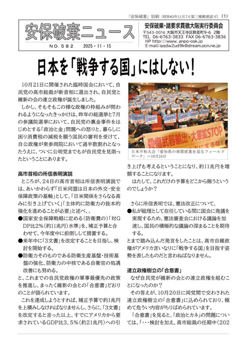 (下部に9月の23宣伝行動掲載) 《大阪安保ニュース581号より》