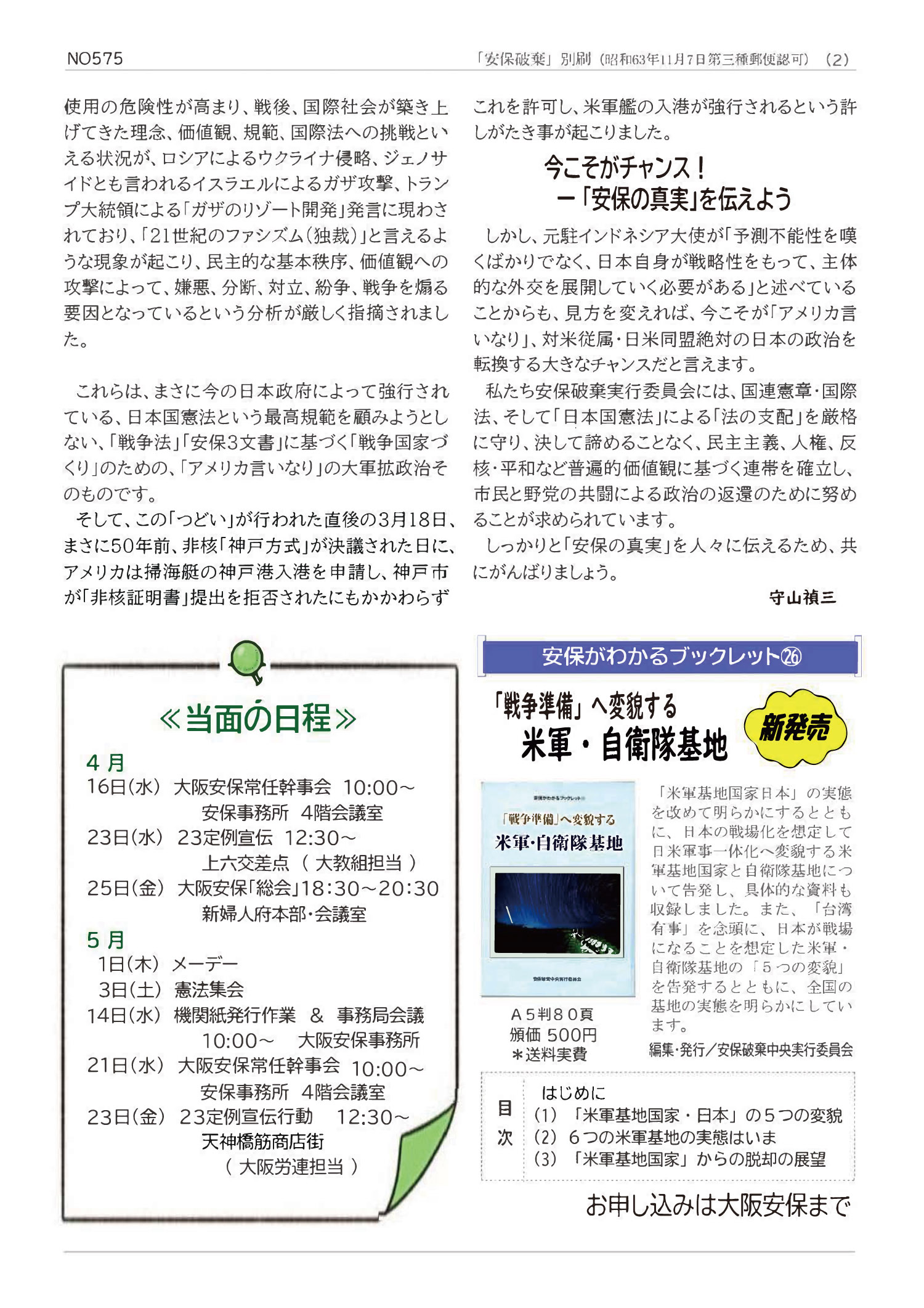 | 23(金) | ◆新年最初の大阪安保23定例宣伝行動 ■日時:23日(金)12:30~ 南森町商店街入り口 |