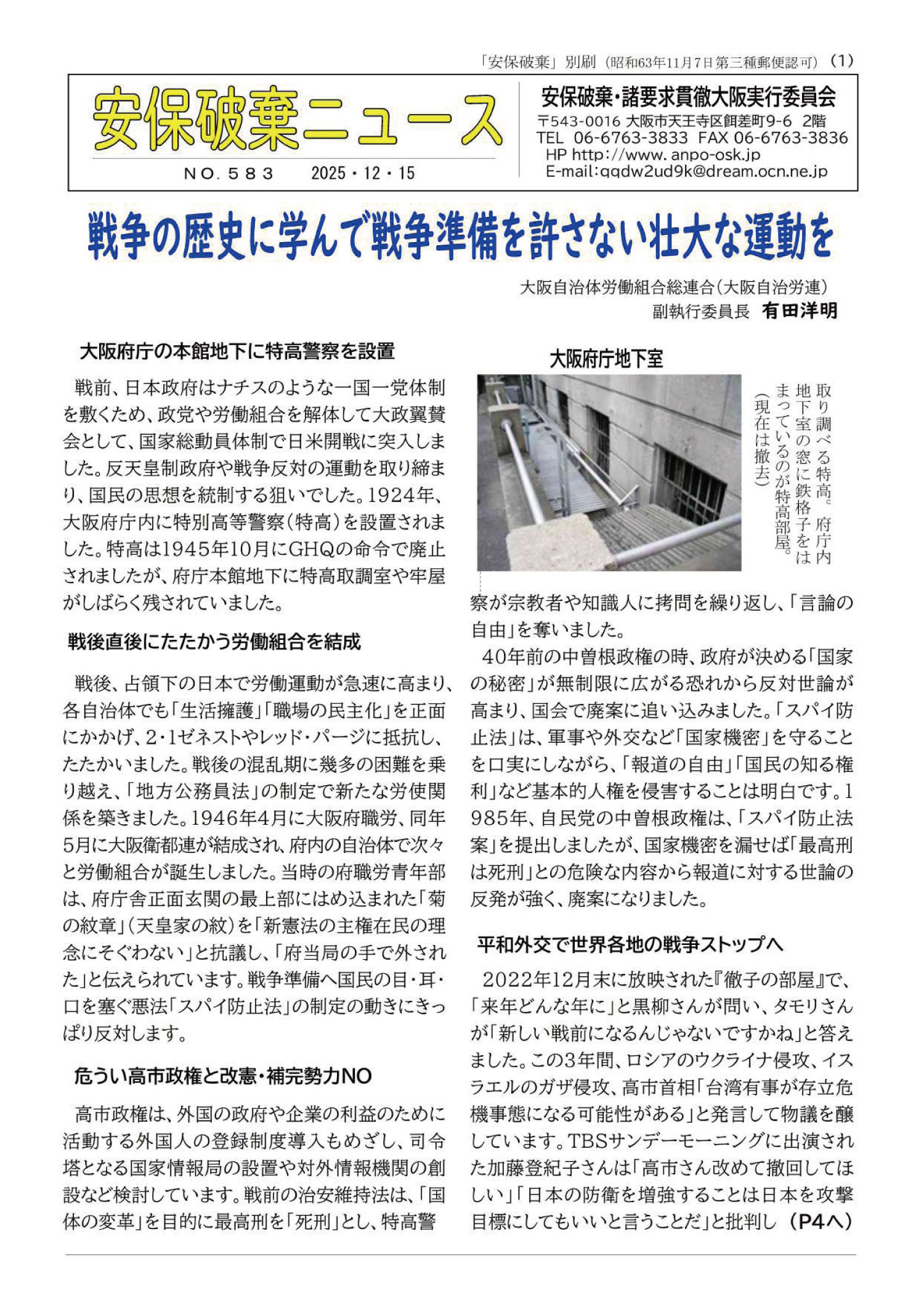 自治体に働きかけるため、皆さまのお力をお貸しくださいますよう、よろしくお願いいたします。(大阪安保)